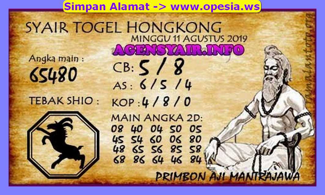Prediksi Angka Jitu Togel HK Hongkong Minggu 11 Agustus 2019