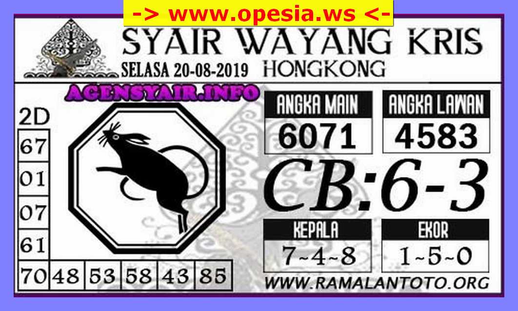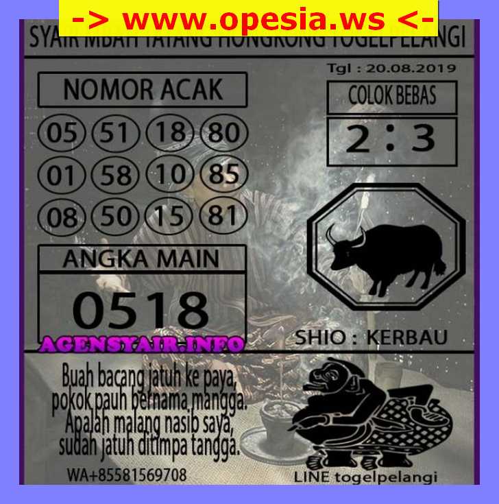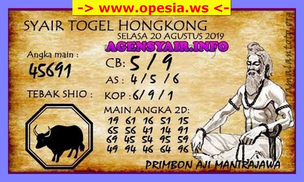 Prediksi Angka Jitu Togel HK Hongkong Selasa 20 Agustus 2019