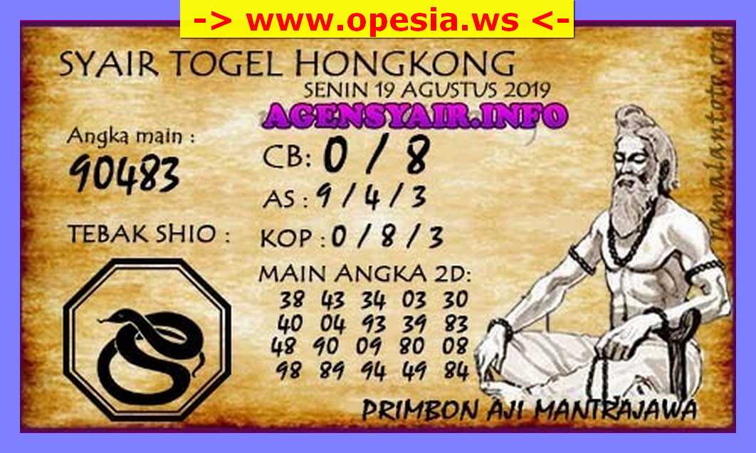 Selamat datang di situs togel Hongkong jitu terpercaya. Disini kami akan memberikan Bocoran Toto prediksi angka togel HK hari senin 19 agustus 2019.