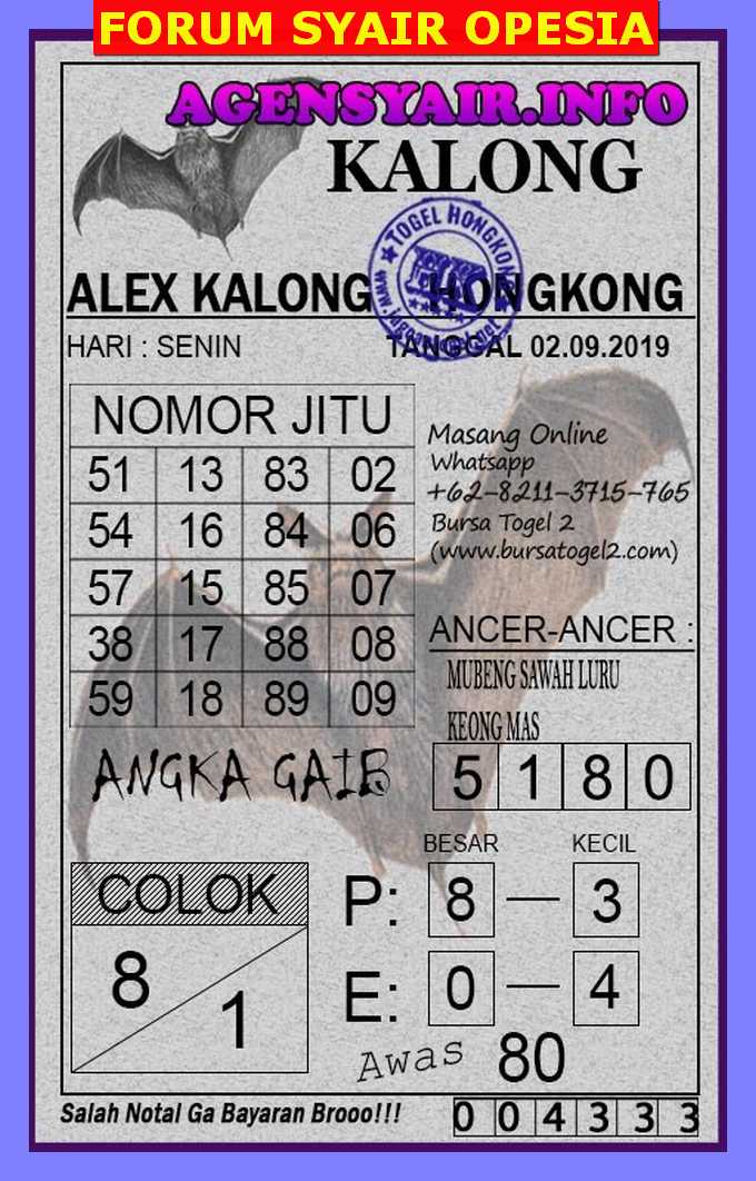 Prediksi Angka Jitu Togel HK Hongkong senin 2 september 2019