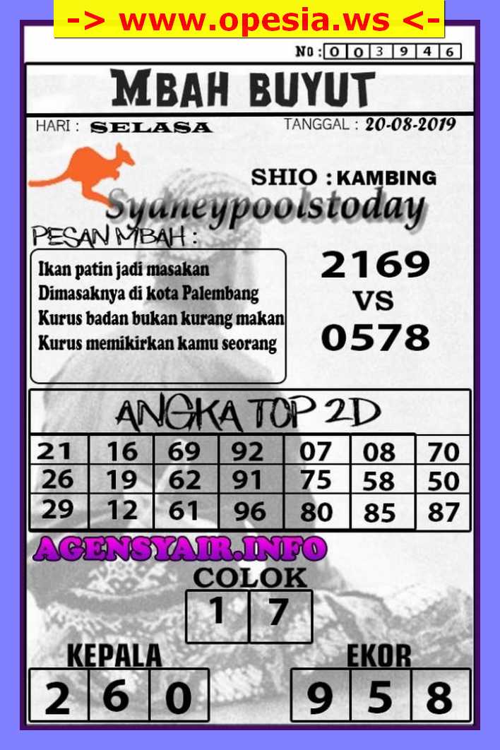 Prediksi Angka Jitu Togel SDY Sidney Selasa 20 Agustus 2019