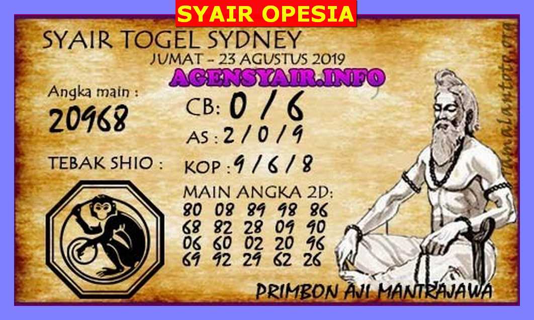 Prediksi Angka Jitu Togel SDY Sidney Jumat 23 Agustus 2019