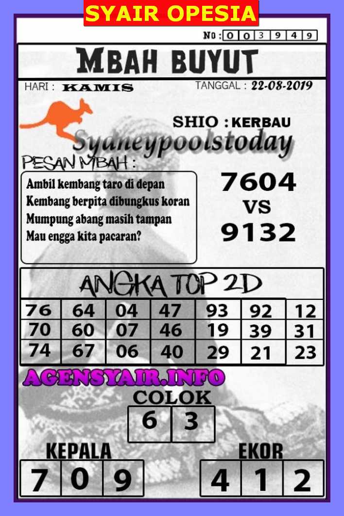 Prediksi Angka Jitu Togel SDY Sidney kamis 22 agustus 2019