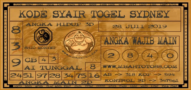 Selamat datang di situs togel Sidney jitu terpercaya. Disini kami akan memberikan Bocoran Toto prediksi angka togel SDY hari Minggu 28 Juli 2019.