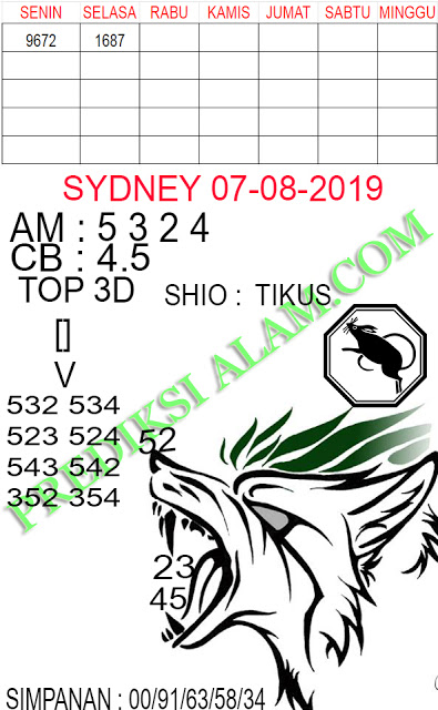 Prediksi Angka Jitu Togel SDY Sidney rabu 07 agustus 2019