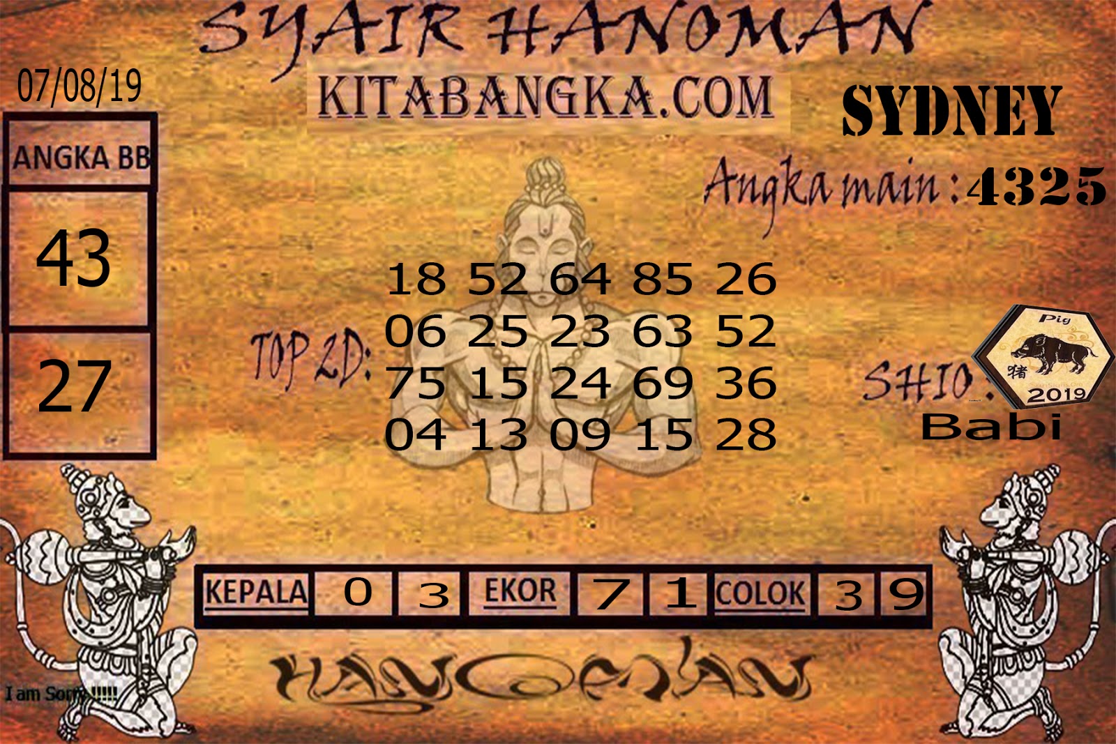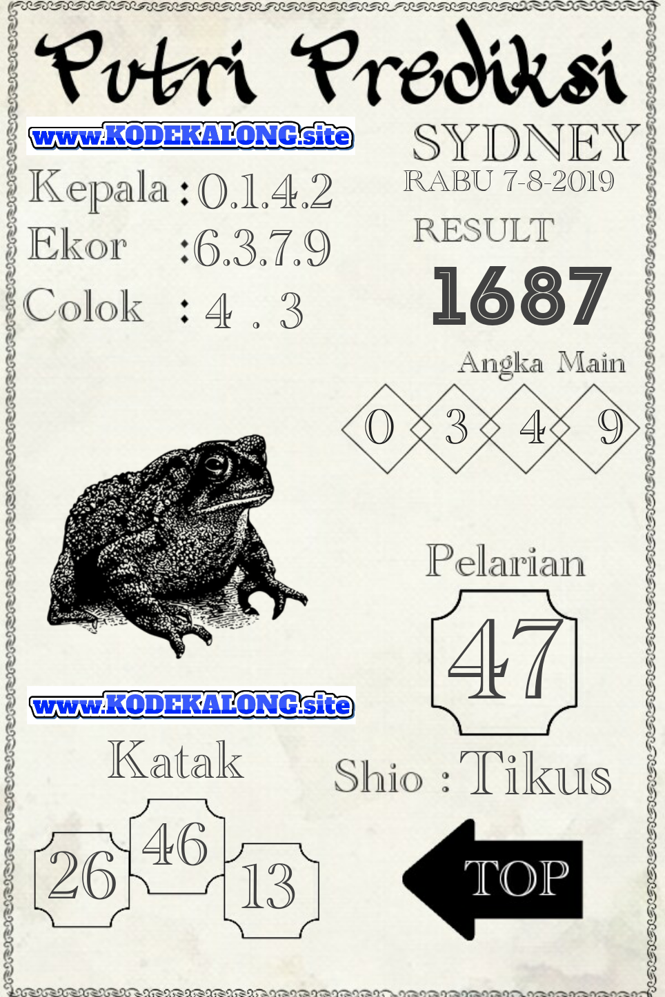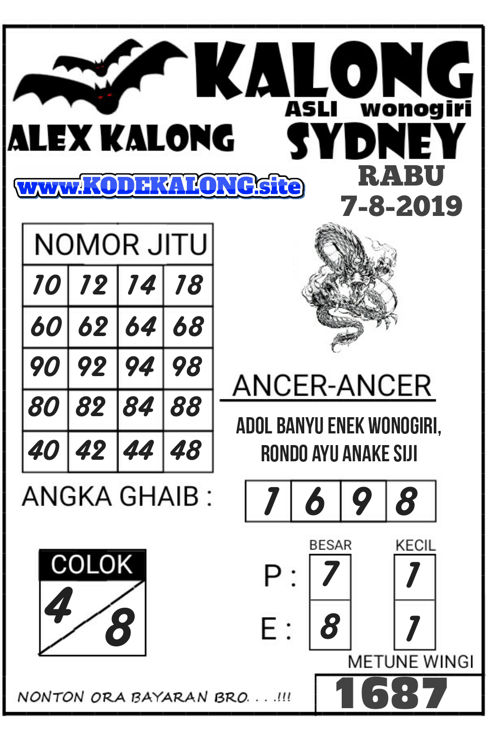 Prediksi Angka Jitu Togel SDY Sidney rabu 07 agustus 2019