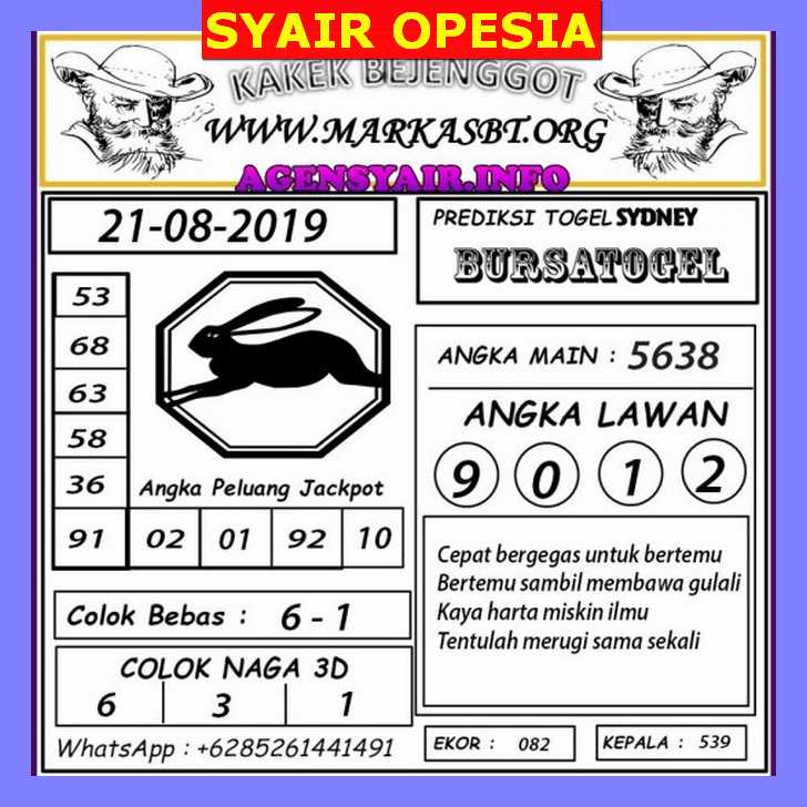 Prediksi Angka Jitu Togel SDY Sidney rabu 21 agustus 2019