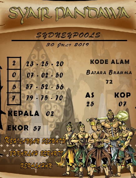 Selamat datang di situs togel Sidney jitu terpercaya. Disini kami akan memberikan Bocoran Toto prediksi angka togel SDY hari Selasa 30 Juli 2019.