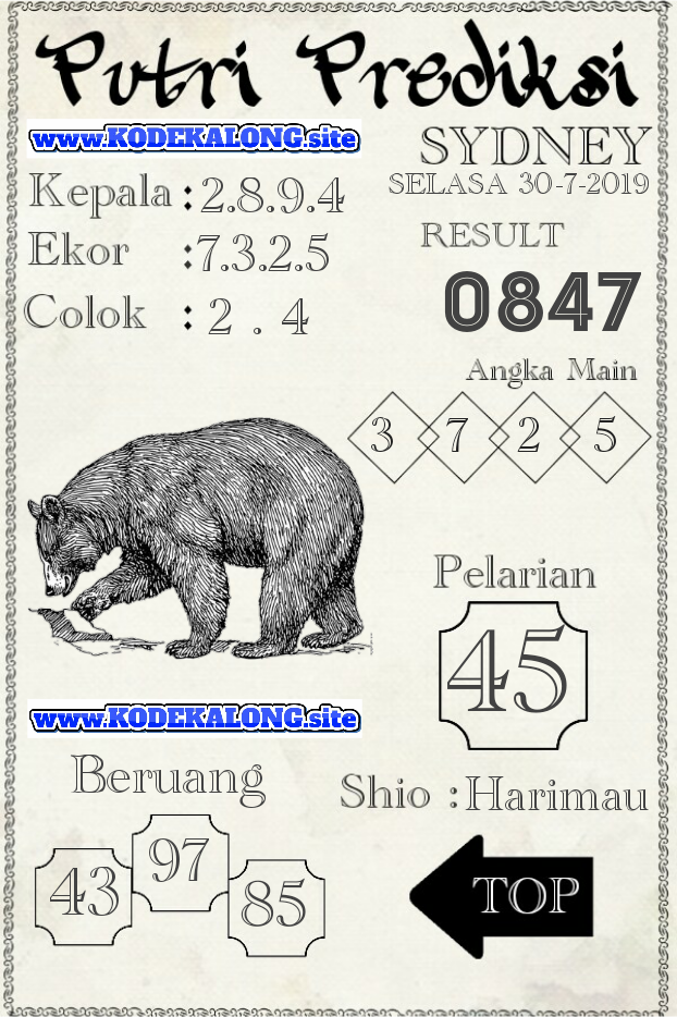 Selamat datang di situs togel Sidney jitu terpercaya. Disini kami akan memberikan Bocoran Toto prediksi angka togel SDY hari Selasa 30 Juli 2019.