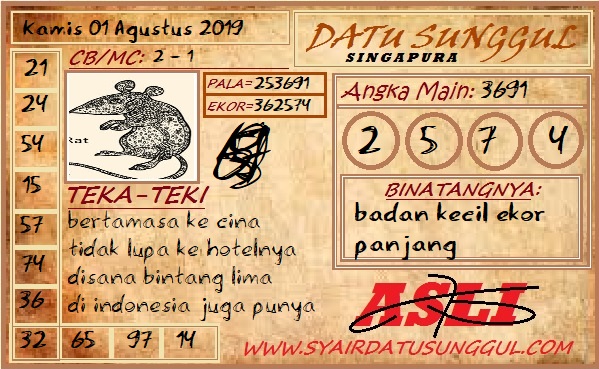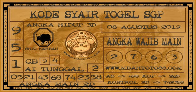Prediksi Angka Jitu Togel SGP Singapore kamis 08 Agustus 2019