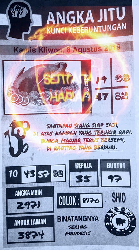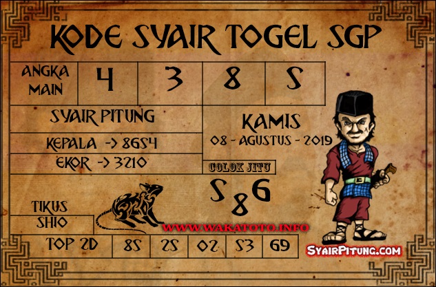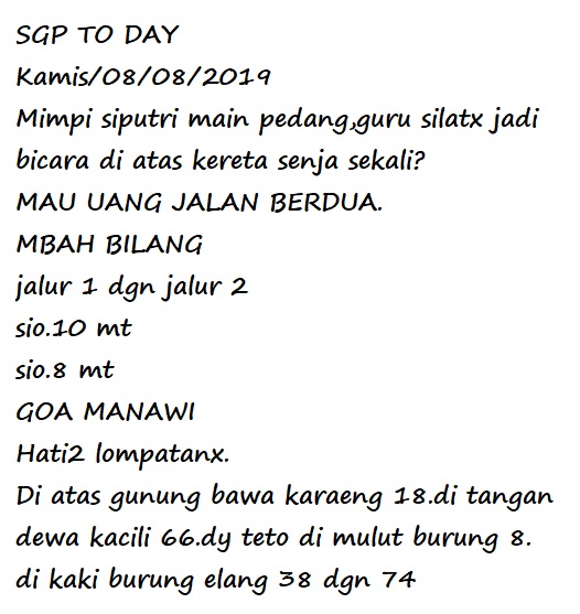 Prediksi Angka Jitu Togel SGP Singapore kamis 08 agustus 2019