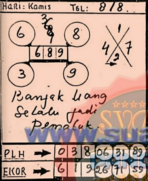 Prediksi Togel Singapore, Hallo sobat togelers semuanya! disini anda akan mendapatkan prediksi angka-angka jitu yang bisa anda jadikan angka ajaib untuk bahan pertimbangan dalam pemasangan togel. Seperti yang kita ketahui bahwa tidak semua orang memiliki keberuntungan dalam pemasangan togel. Oleh karena itu tersedianya halaman prediksi togel Singapore untuk membantu anda dalam pemasangan togel. Namun ada satu hal yang harus anda ketahui yaitu angka prediksi togel tidak selalu menjamin anda terus memenangkan togel. Tidak semua hasil bocoran togel itu akurat atau jitu, kadang juga meleset. Anda juga bisa mendapatkan angka jitu melalui jalur mimpi anda dan kejadian dalam mimpi bisa di tafsirkan oleh buku mimpi yang sudah tersedia situs ini. Semoga angka prediksi memberikan anda hoki yang besar.