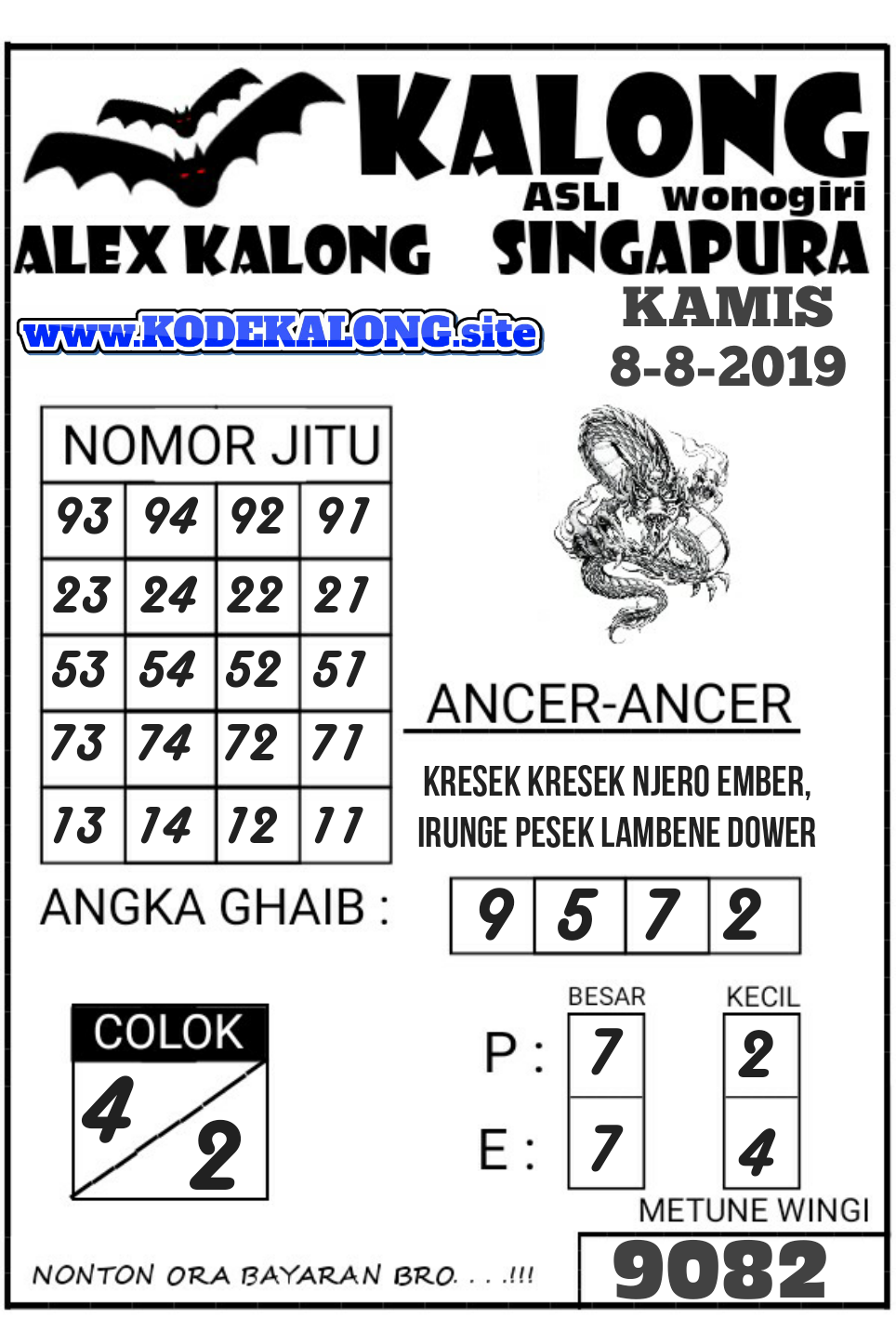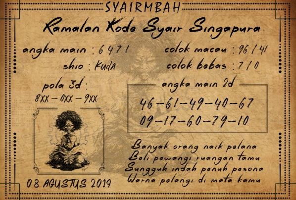 Prediksi Angka Jitu Togel SGP Singapore kamis 08 Agustus 2019