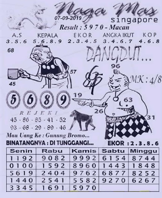 Prediksi Angka Jitu Togel SGP Singapore sabtu 7 september 2019